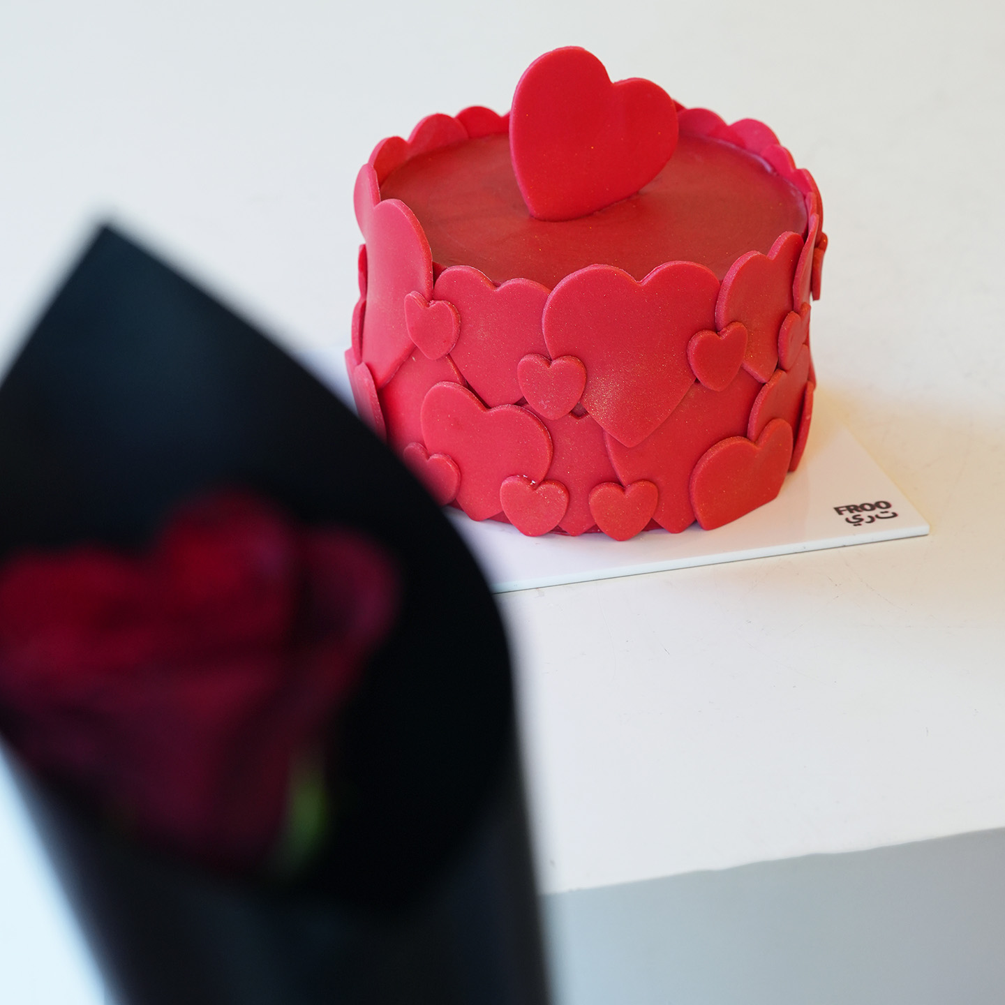 | Combination of red rose arranged with 300g of cake. |