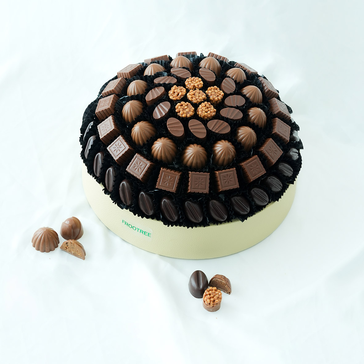 Discover our luxurious 800g round Chocolate leather Tray, beautifully arranged with a variety of assorted chocolate flavors. Each piece is crafted for rich taste and exquisite presentation, perfect for gifting or treating yourself. Elegant, round-shaped, and irresistibly delicious —every bite is a celebration of chocolate bliss.