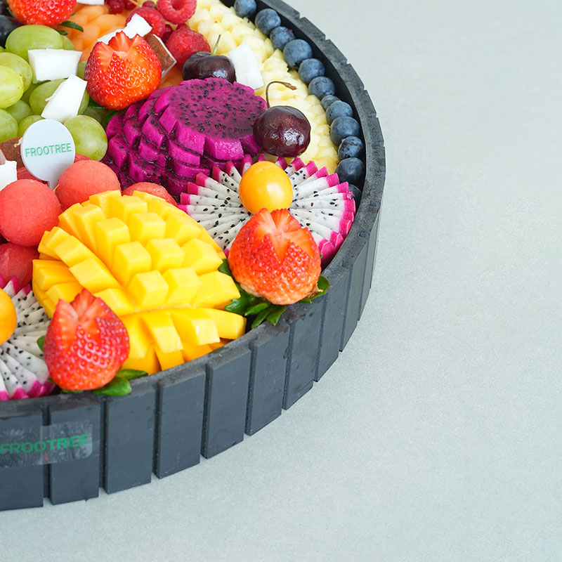 A fruit platter featuring a mix of fruits including Watermelon, Blueberries, Strawberries, Guava, Golden berries,orange, pineapple and other seasonal fruits — beautifully arranged in a tray (38 cm). Some fruits may be replaced by others depending on seasonal availability.